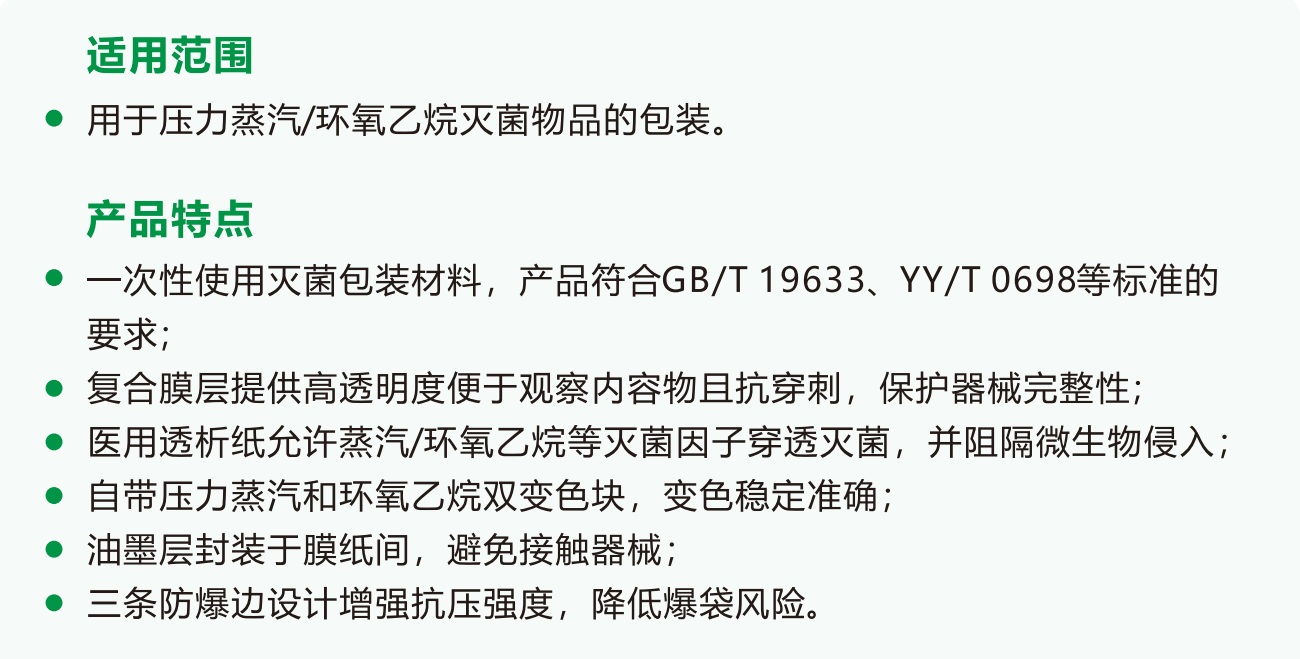 压力蒸汽/环氧乙烷灭菌化学指示包装袋